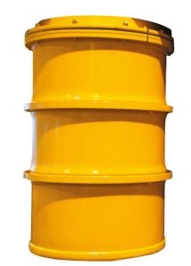 桶盖用支撑螺栓闭合,并用不同的丁纳橡胶密封。桶上标有“放射性废弃物”